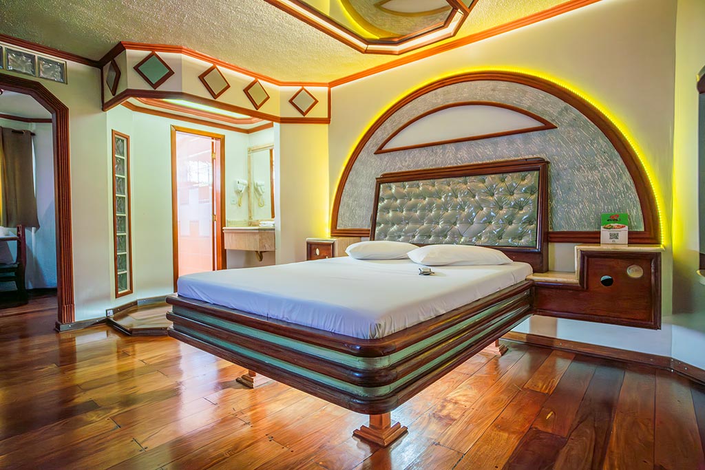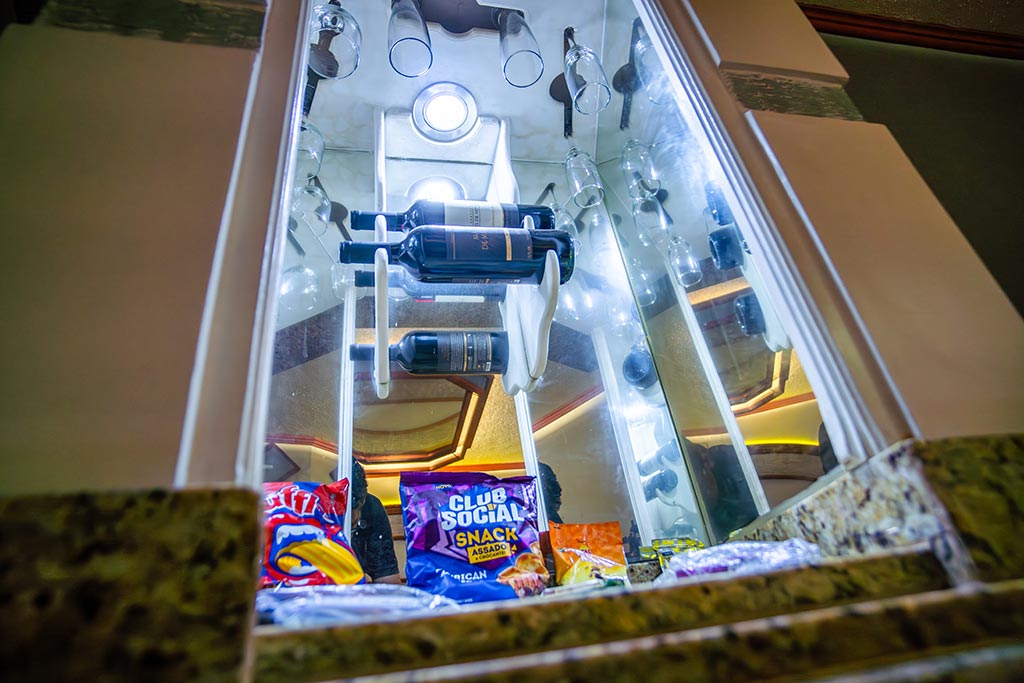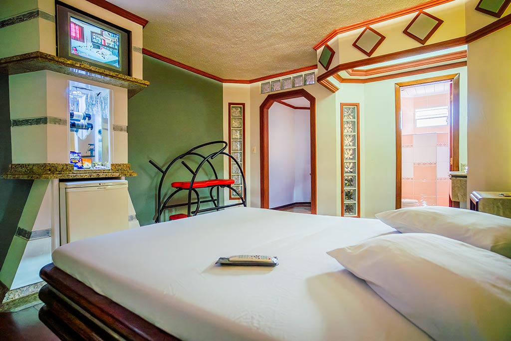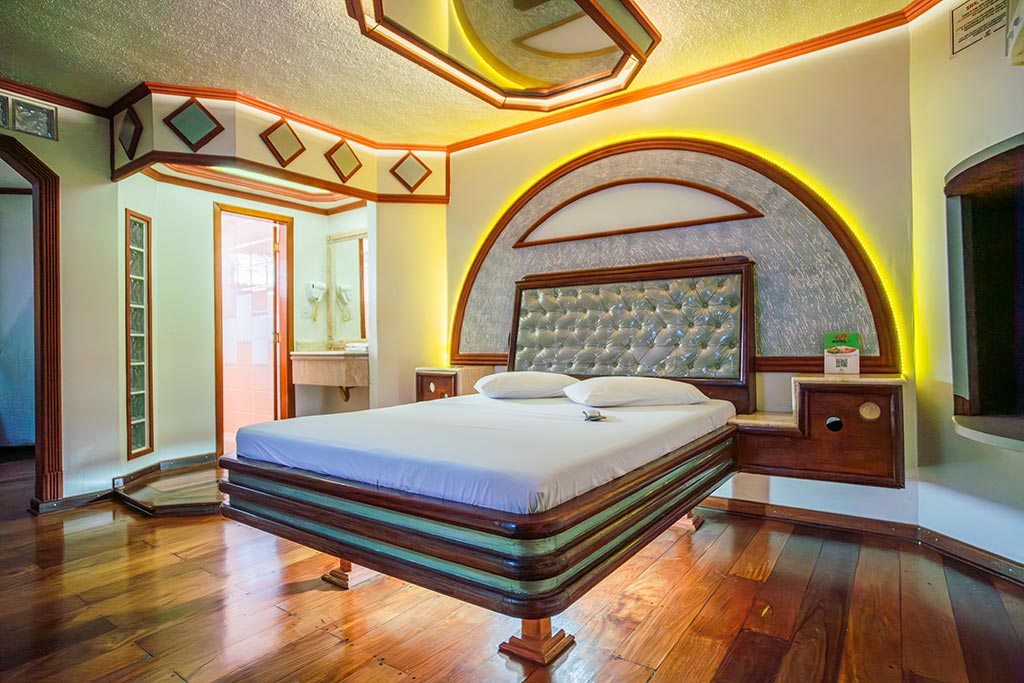 Nossa Suíte super luxo é ideal para quem busca conforto, praticidade e privacidade. Equipado com cama confortável, ar-condicionado, iluminação decorativa em LED e ambiente climatizado, oferece o ambiente perfeito para momentos relaxantes a dois. Cortinas blackout garantem total privacidade e a decoração moderna completa a experiência.