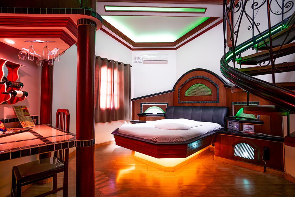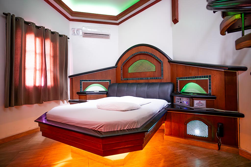 Nossa Suíte super luxo é ideal para quem busca conforto, praticidade e privacidade. Equipado com cama confortável, ar-condicionado, iluminação decorativa em LED e ambiente climatizado, oferece o ambiente perfeito para momentos relaxantes a dois. Cortinas blackout garantem total privacidade e a decoração moderna completa a experiência.